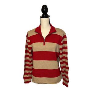 Nine & Company Sweater Women's Size XL Striped Knit Long Sleeve Cotton 1/4 Zip
