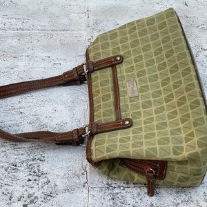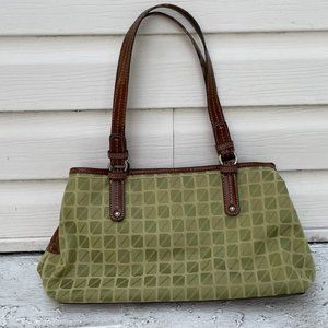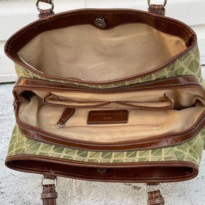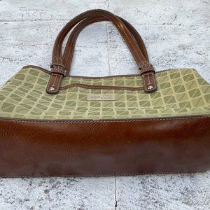 Nine & Company Women Bag Green Convas Brown Leather Hand Bag