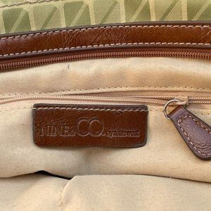 Nine & Company Women Bag Green Canvas Brown Leather Hand Bag