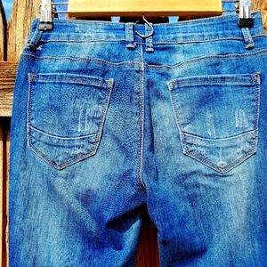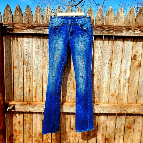 Nine Planet jeans in size 3 straight. Very prettily distressed. Only flaw is a torn belt loop, could easily be sewn. Lovely jeans! ♡