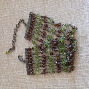 Nine Strand Beaded Green Burnt Orange Bracelet