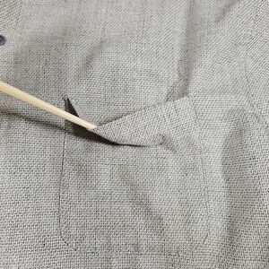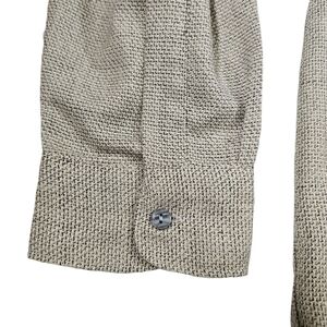 Excellent Condition, Textured Woven Fabric, Banded Collar, One Breast Pocket, Full Button Closure