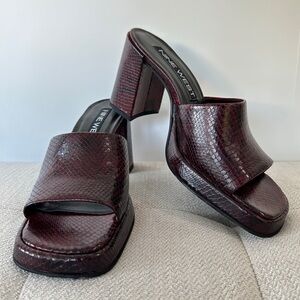 Nine Wesr Burgundy Snake Skin Prints Platform Sandals