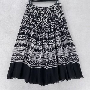 Nine West 100% Silk Maxi Skirt Womens 4 Lined Boho Black Southwestern Gypsy