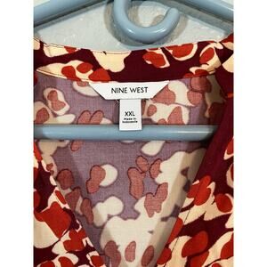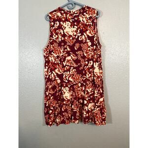 Nine West 2XL V Neck Sleeveless Dress Mini Orange White Maroon Floral Ruffle