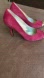 Nine West 6M Red Suede with Gold Toe Cap Pump