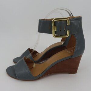 Nine West 7.5 M Women Narcissus Blue Leather Wedge Ankle Buckle Sandals Shoes