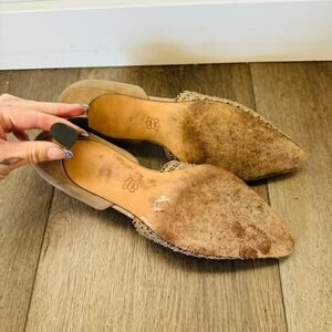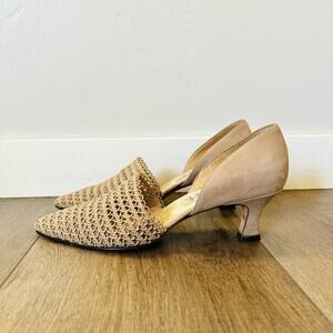 Nine West 80s vintage tan woven toe suade back Heels woman’s 8