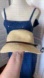This cap has a leather strap band with a cute buckle around the circumference where the hat rim starts to increase and get wider. This is a floppy foldable hat you can pack for travel in your suitcase. You may want to stuff the inside with something in your luggage to help keep its shape. Packable sun hat.