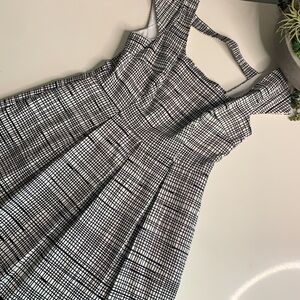 Nine West A Line Art eyelet Addams open back Midi holiday dress 8 black white