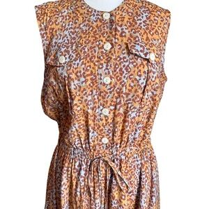 Nine West A-Line Shirt Dress Animal Print Sleeveless Chest Pocket Tie Waist Sz L