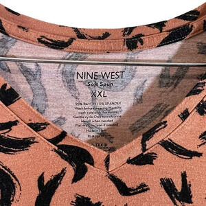 Nine West Abstract V Neck T Shirt Plus XXL Soft Spun Light Brown Black Stretch