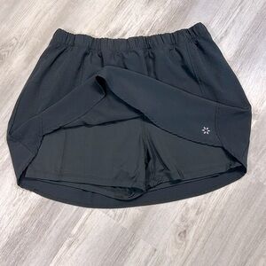 Stylish black athletic skirt skort with built in shorts and a comfortable fit. Perfect for workouts, tennis, golf, pickleball, or casual wear.
