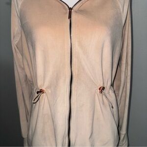Nine West Active Women’s Small Medium Beige Soft Velur Jacket Sweatshirt Hoodie