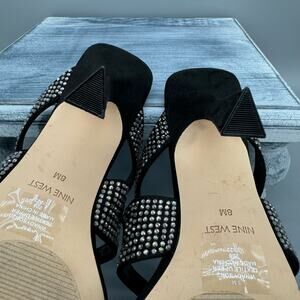 Nine West Adyson Embellished Square Toe Heeled Sandals Black Size 8M