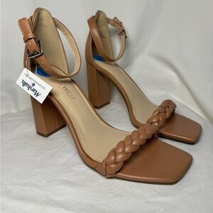 Nine West Allha 3 Braided Strap Chunky Heels in Macaroon Tan 6.5