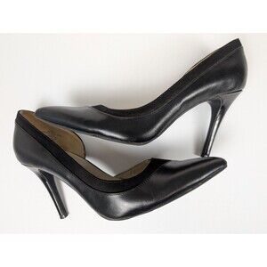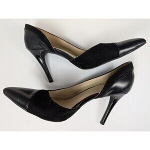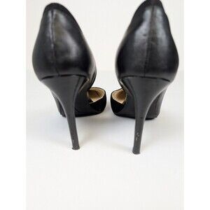 Nine West Alvaa Black Leather Pointed Toe Slip On Half D'Orsay Stiletto 7.5M