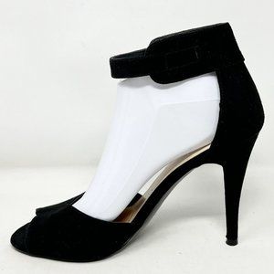 Nine West Ammazo Black Faux Suede Ankle Strap Fringe Accent 4” Heels Size 10M