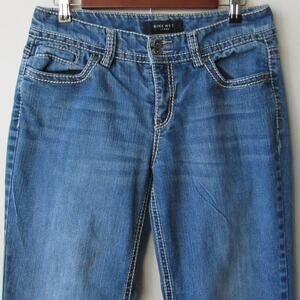 Nine West Annette Blue Missy Mid Rise Rhinestone Boot Cut Western Jeans 6/27