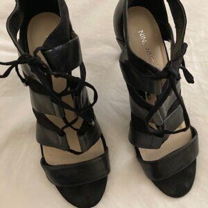 Nine West Artliff Black 4" Leather Heels with Zipper Back and Lace Up Size 8.5
