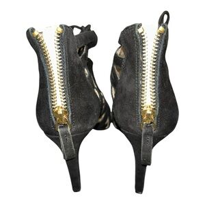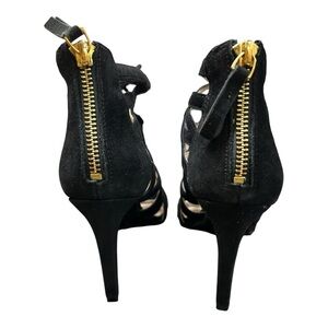 Nine West Authority Black Suede leather Peep Toe Cutout Heels Sz 6 (New)Strappy