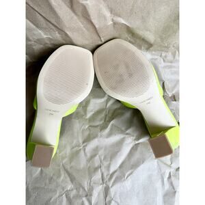 Nine West Behot Heeled Lime Neon Green Slide Sandals Patent Mules Size 7
