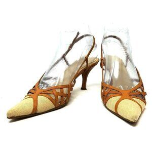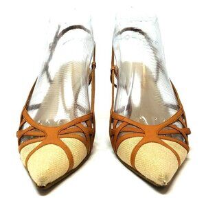 Nine West Beige Canvas/ Lt. Tan Strappy Leather Pointy Toe Slingback Shoes 6M