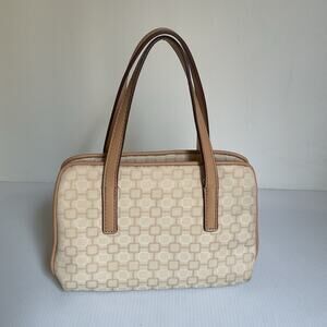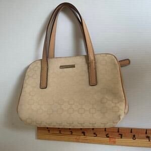 Nine West Beige Canvas Satchel Purse Handbag Top Handle Bag Mini Bag Cute