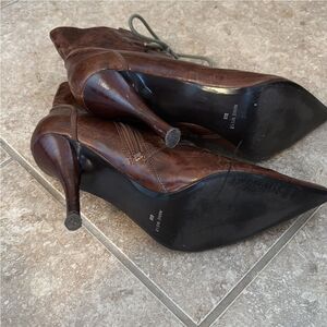 Nine West Belindia Ankle Boots Lace Up Distressed Leather Pointed Toe Size 8M
