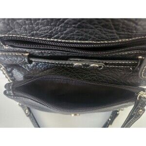 Nine West Black Crossbody Purse Multipocketed Pebble Faux Leather Fold Over