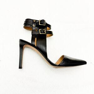 Nine West Black Double Strap Pointy Toe Leather Stiletto Heel Size 9.5