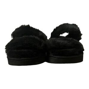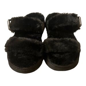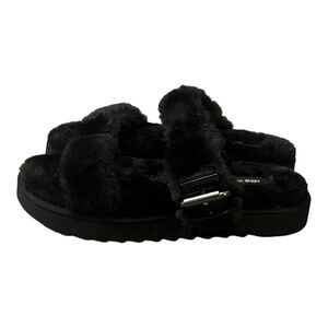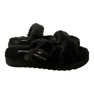 Nine West Black Faux Fur Sandals Fuzzy Plush Double Strap Buckle Slides Size 8