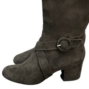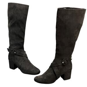Nine West Black Faux Suede Cross Strap Block Heel Tall Riding Boot Women 8.5