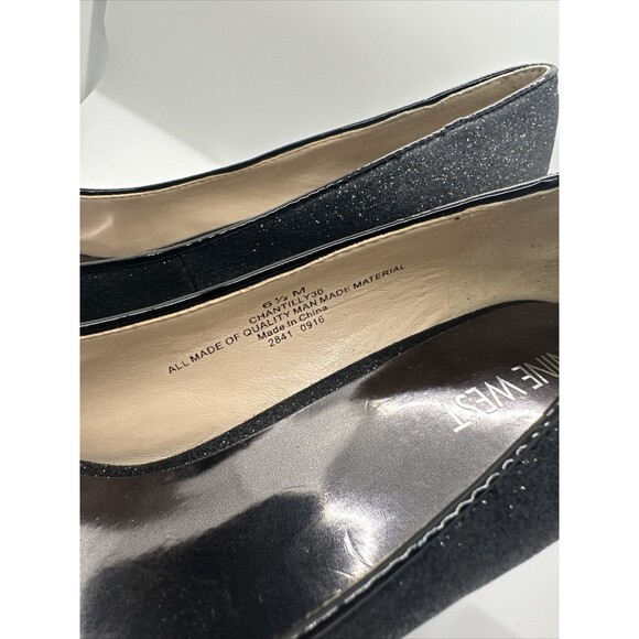 Nine West Black Glittery Stiletto Platform Pumps Heels Sz 6.5M Slip On Open Toe