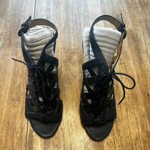 Nine West Black Lace Up Wedges Sz 10 1/2