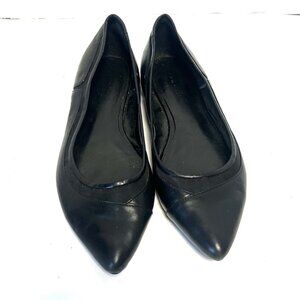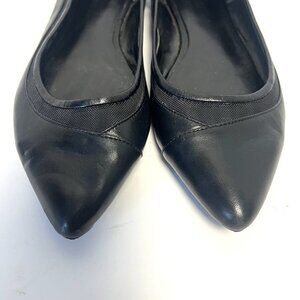 Nine West Black Leather Ballet Flats sz 8 Pointed Toes Mesh Insert Minimalist