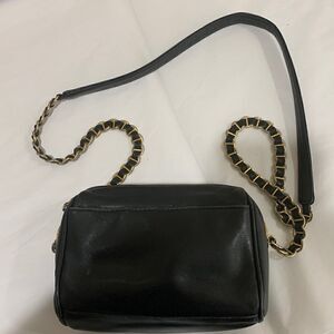 Nine West Black Leather Chain and leather strap crossbody bag. Pouch on front. Inside zipper pocket.