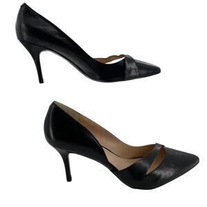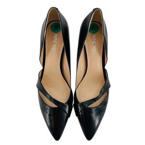 Nine West Black Leather Half D'Orsay Pointed Toe Vamp Strap Classic Heel Pump 8