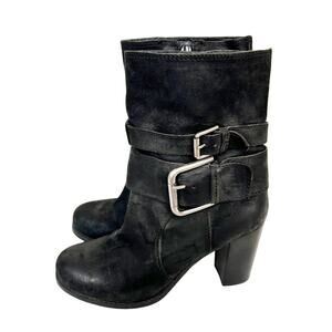 Nine West Black Leather Heeled Buckle Detail Boots Sz 6.5