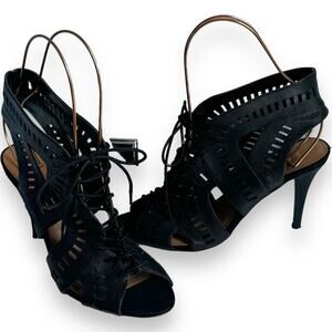 Nine West Black Leather Open Toe Lace Up Heels Ankle Bootie Women’s Size 8