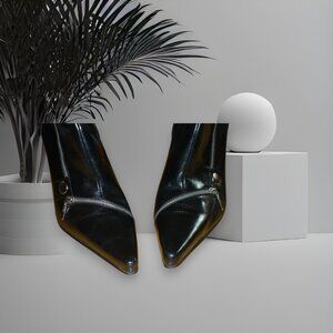 Stay at the head of the class with these statement Nine West black leather ankle boots. Featuring smooth genuine leather uppers, silver zipper accents, and a pointed toe silhouette for timeless polish. The perfect blend of fashion, comfort and everyday versatility. These boots feature a sleek silhouette, zipper sides and toe, smooth leather upper and a comfortable 3.5” heel that elevates your style. Perfect for pairing with dresses, skirts, jeans, workwear, and all skinny wear. Smoke free home.