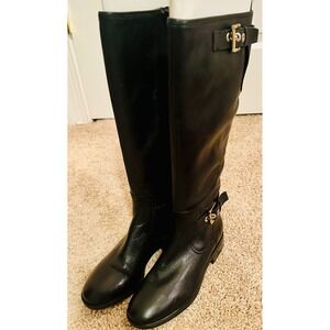 Keywords: Nine West boots, leather riding boots, black boots, knee high boots, gold buckle boots, womens boots, size 5M boots, fashion boots, dress boots, casual boots, stylish boots, leather boots women, black leather boots, riding boots women, fall boots