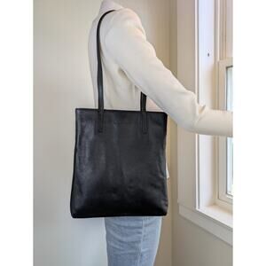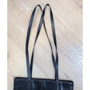Nine West Black Leather Shoulder Bag For Tablet, Mini Laptop, Book Low Profile