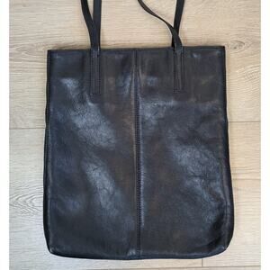 -Features: Low profile, minimalist and sleek shoulder bag, perfect for tablet, mini laptop or book (SEE SIZE BELOW). Buttery soft smooth black leather. Interior zip pocket. No exterior hardware.