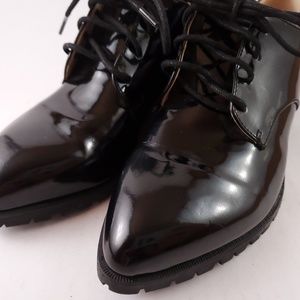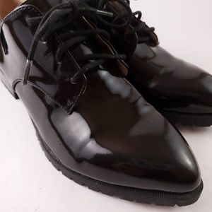 Nine West Black Patent Leather Lace Up Oxfords Size 6.5. Shoes are in like new condition. The tread appears to have never been walked on but there are some markings on the insole.