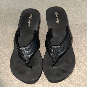 Stylish black sandals by Nine West. Comfortable and chic design. Perfect for casual wear.