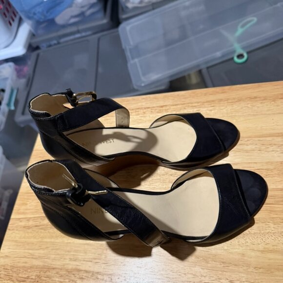 Nine West Black Sandals with Wooden Heel and Wrap Around Strap Size 8.5