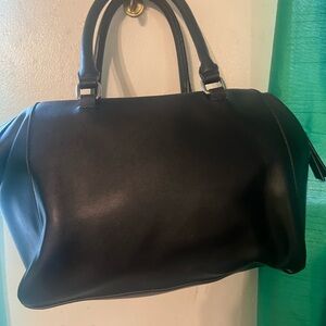 Elegant black satchel by Nine West. Features a charming flower accent. Ideal for daily wear.