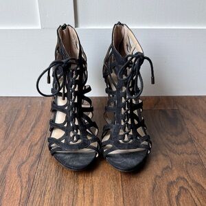 Chic black strappy design. Perfect for a night out. Stylish and comfortable.