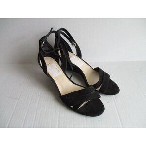 Nine West Black Suede D'orsay Sandals Covered Wedge 2-5/8" Heels. 'REVIVE' ankle strap pumps. Size 9-1/2M. (S24-04) 0324
